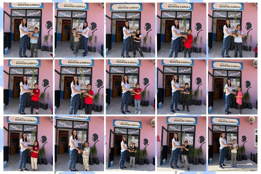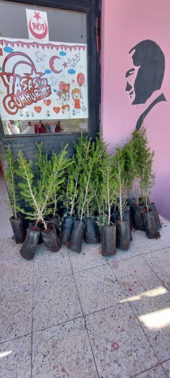 İlkokul öğrencilerimize 1 er adet çam ağacı fidanı dağıtımı yaptık.